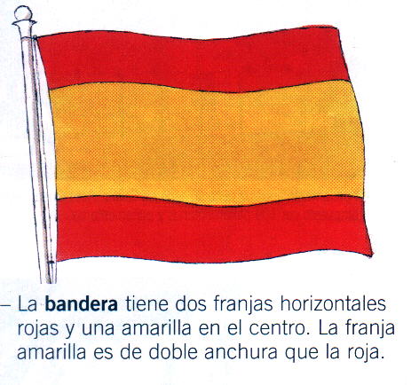 - La bandera tiene dos franjas horizontales rojas y una amarilla en el centro. La franja amarilla es de doble anchura que la roja.