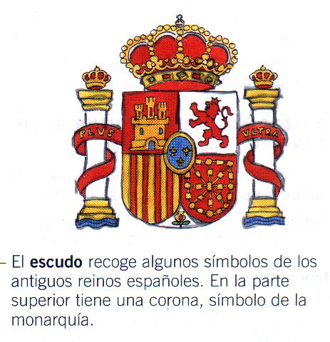 - El escudo recoge algunos símbolos de los antiguos reinos españoles. En la parte superior tiene una corona, símbolo de la monarquía.