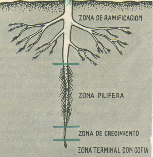 Absorbe del suelo la savia bruta y la conduce hasta el tallo.