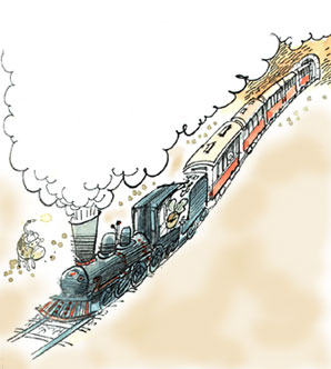 en carretas o diligencias. Claro, que las primeras locomotoras a vapor no