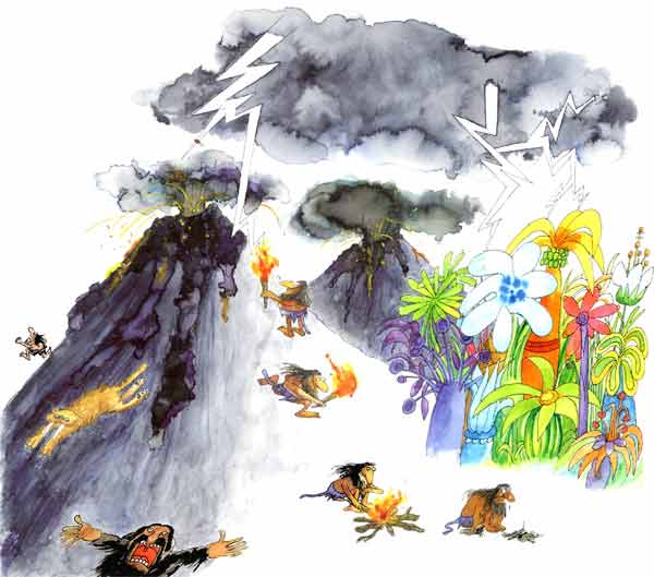 En el principio el fuego era de los dioses. Según se creía, ellos ponían en erupción los volcanes, hacían caer rayos y
