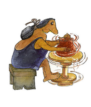 el barro cocido se vuelve duro, resistente. Quizá al estar cerca del fuego, algunos cestos enlodados se cocieron y
