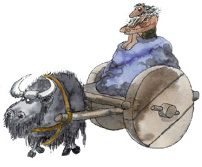 ... y después de varios siglos, rudos carros de dos ruedas de madera