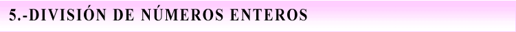 Para calcular el cociente de dos números enteros: 1.- Se halla el cociente de sus valores absolutos. 2.- Al resultado obtenido se añde el signo más (+), si ambos tienen el mismo signo, y el signo menos (-), si tienen distinto signo.