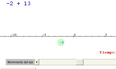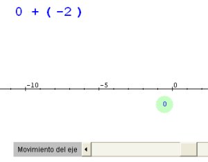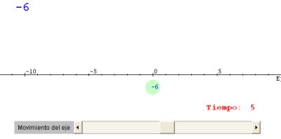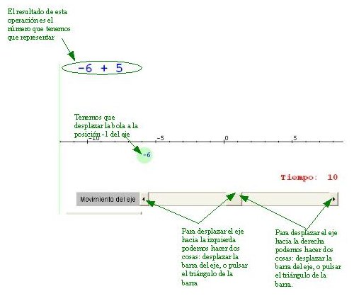 es decir, que a la posición anterior le tienes que sumar 5, por lo tanto -6 + 5 = -1. Tenemos que representar el número -1 en el eje como se explica en la imagen. Cuando traslademos la bola a la posición -1 el programa nuevamente responderá: