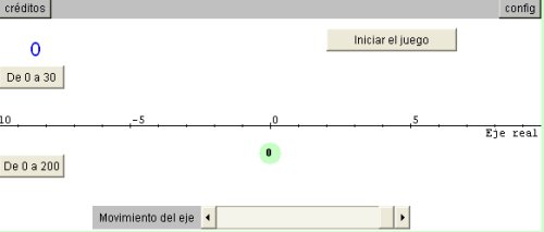 Procedimiento. En la parte izquierda se encuentran dos botones, uno para seleccionar números entre 0 y 30 y otro para seleccionar un número entre 0 y 200. Al pulsar sobre uno de ellos aparecerá un número dentro de la bola verde. Éste es el que debes representar en la recta. Pulsa con el botón izquierdo del ratón sobre la bola y manteniéndolo pulsado, mueve el ratón y comprobarás como se desplaza la bola. Si el número que contiene la bola no se encuentra en la pantalla, desplaza la barra del eje hasta la posición deseada y traslada la bola a la posición correcta. Si tienes dudas del funcionamiento del juego, pulsa sobre la imagen y te lo explico "mas despacito".