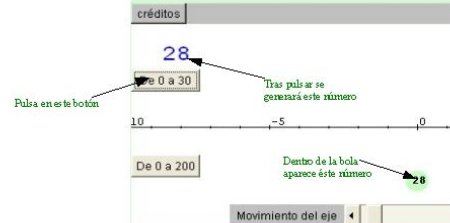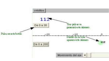 o de 0 a 200: Ahora hay que pulsar sobre la bola (con el botón izquierdo del ratón) y sin dejar de pulsar, trasladamos la bola al lugar de la recta que le corresponda. Si el número generado no se encuentra en la pantalla es necesario desplazar el eje para buscarlo. Observa el movimiento del eje: