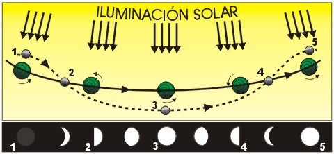 Tierra gira alrededor del Sol, la Luna gira alrededor de la Tierra y sobre