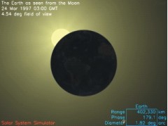 En esta dirección http://space.jpl.nasa.gov/ existe un potente simulador que te permite visualizar cualquier astro desde cualquier lugar del espacio. Entrando aquí encontrarás un vídeo realizado con el simulador anterior que permite visualizar el movimiento de la Luna alrededor de la Tierra http://space.jpl.nasa.gov/movies.html |