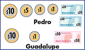 Pedro y Guadalupe vendieron paletas (helados) en su escuela durante cuatro semanas, pues querían juntar dinero para comprarle un regalo a su abuelita. Registra en cada semana, ¿quién de los dos juntó más dinero?