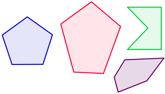 Explora diferentes pentágonos buscando si poseen ejes de simetría: