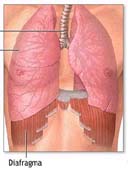 Diafragma: Membrana formada en su mayor parte por fibras musculares, que separa la cavidad torácica de la abdominal.